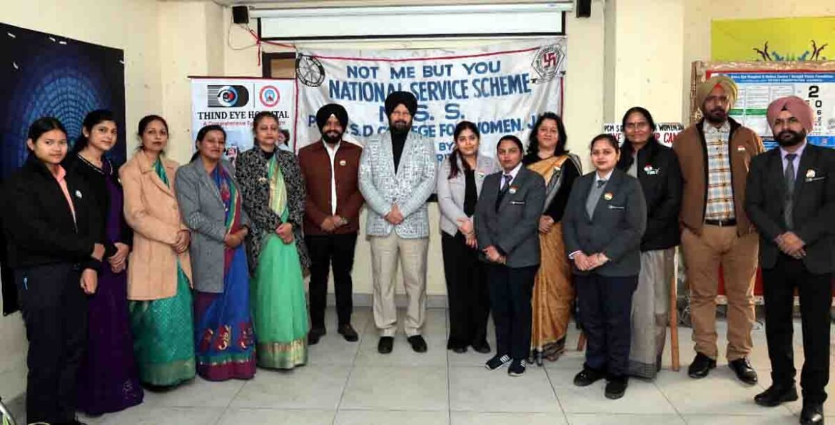 ਜਲੰਧਰ : ਆਈਕਿਊਏਸੀ ਦੀ ਅਗਵਾਈ ਹੇਠ ਪੀਸੀਐਮ ਐਸ.ਡੀ. ਕਾਲਜ ਫਾਰ ਵੂਮੈਨ, ਜਲੰਧਰ ਦੀ ਐਨਐਸਐਸ ਯੂਨਿਟ ਨੇ ਰਾਸ਼ਟਰੀ ਬਾਲੜੀ ਦਿਵਸ 2026 ਦੇ ਮੌਕੇ ‘ਤੇ ਥਿੰਦ ਆਈ ਹਸਪਤਾਲ ਦੇ ਸਹਿਯੋਗ ਨਾਲ ਇੱਕ-ਰੋਜ਼ਾ ਅੱਖਾਂ ਦੀ ਜਾਂਚ ਕੈਂਪ ਦਾ ਆਯੋਜਨ ਕੀਤਾ। ਇਹ ਕੈਂਪ ਅੱਖਾਂ ਦੀ ਸਿਹਤ ਬਾਰੇ ਜਾਗਰੂਕਤਾ ਪੈਦਾ ਕਰਨ, ਅੱਖਾਂ ਦੀ ਰੋਕਥਾਮ ਨੂੰ ਉਤਸ਼ਾਹਿਤ ਕਰਨ ਅਤੇ ਭਾਈਚਾਰੇ ਦੀ ਸਮੁੱਚੀ ਭਲਾਈ ਵਿੱਚ ਯੋਗਦਾਨ ਪਾਉਣ ਦੇ ਉਦੇਸ਼ ਨਾਲ ਆਯੋਜਿਤ ਕੀਤਾ ਗਿਆ ਸੀ।